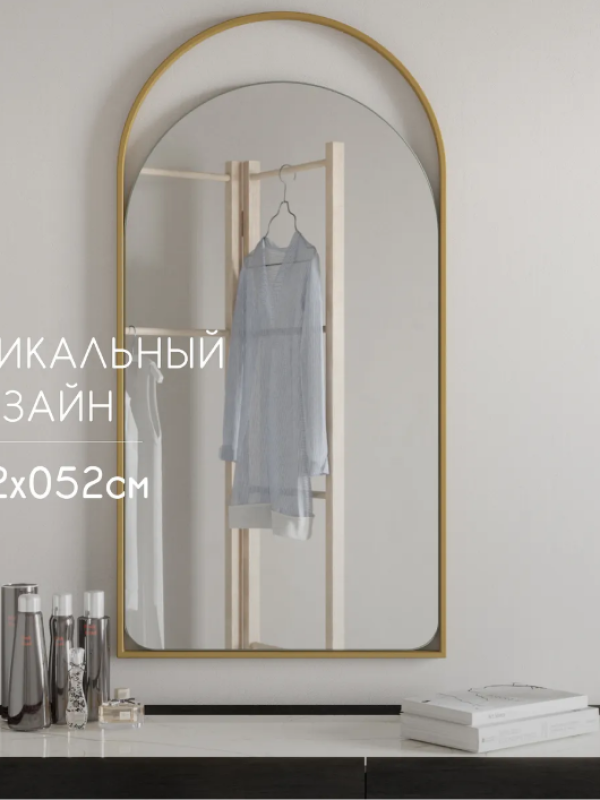 Дизайнерское арочное настенное зеркало Glass Memory Artful в металлической раме золотого цвета в Тобольске